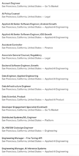 After one Week hustle OpenAI  announced more than 40 Jobs in Company OpenAI is Building safe Artificial General Intelligence to serve Humanity.